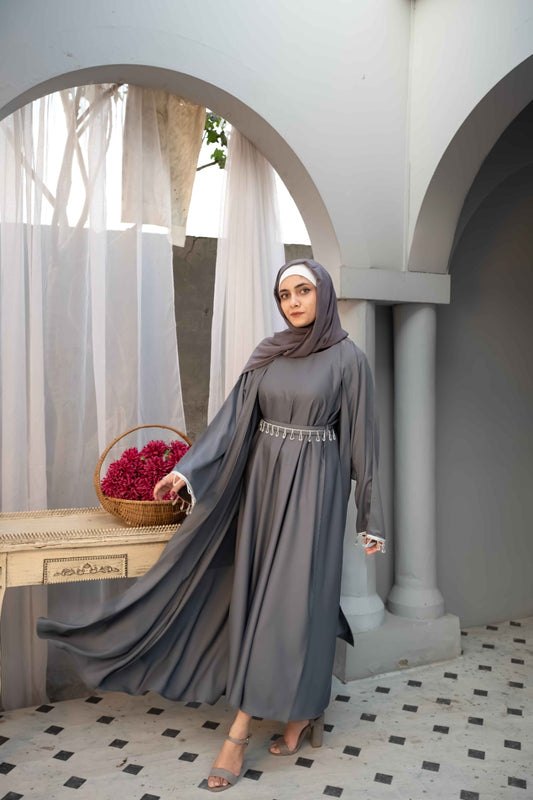 Slate Grace Stone-Accented Abaya (3-Piece Set)